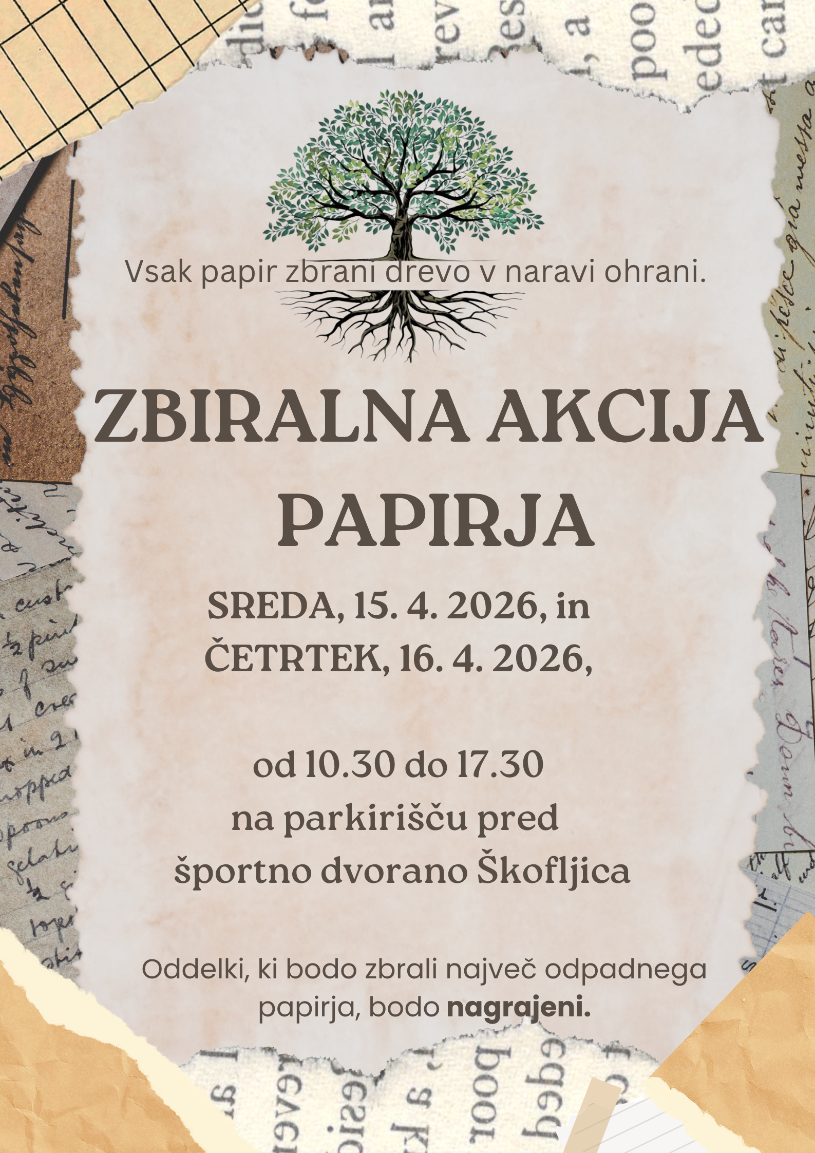 V okviru spoznavanja različnih športov se bomo v naslednjem tednu pri predmetu šport za sprostitev odpravili v Ljubljano na plezanje. V ponedeljek, 13. 4. 2026, je termin rezerviran za 7. c in 7. d razred. V četrtek, 16. 4. 2026 pa za 7. a in 7. b razred. Sprememba...